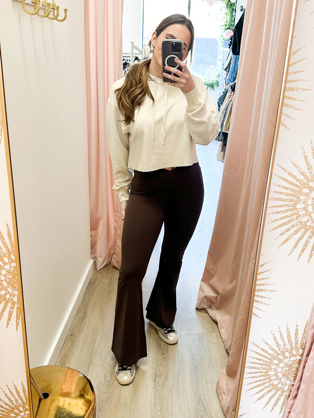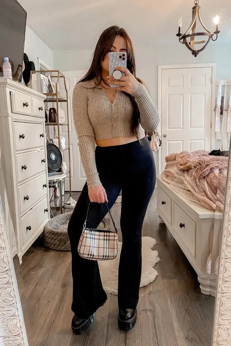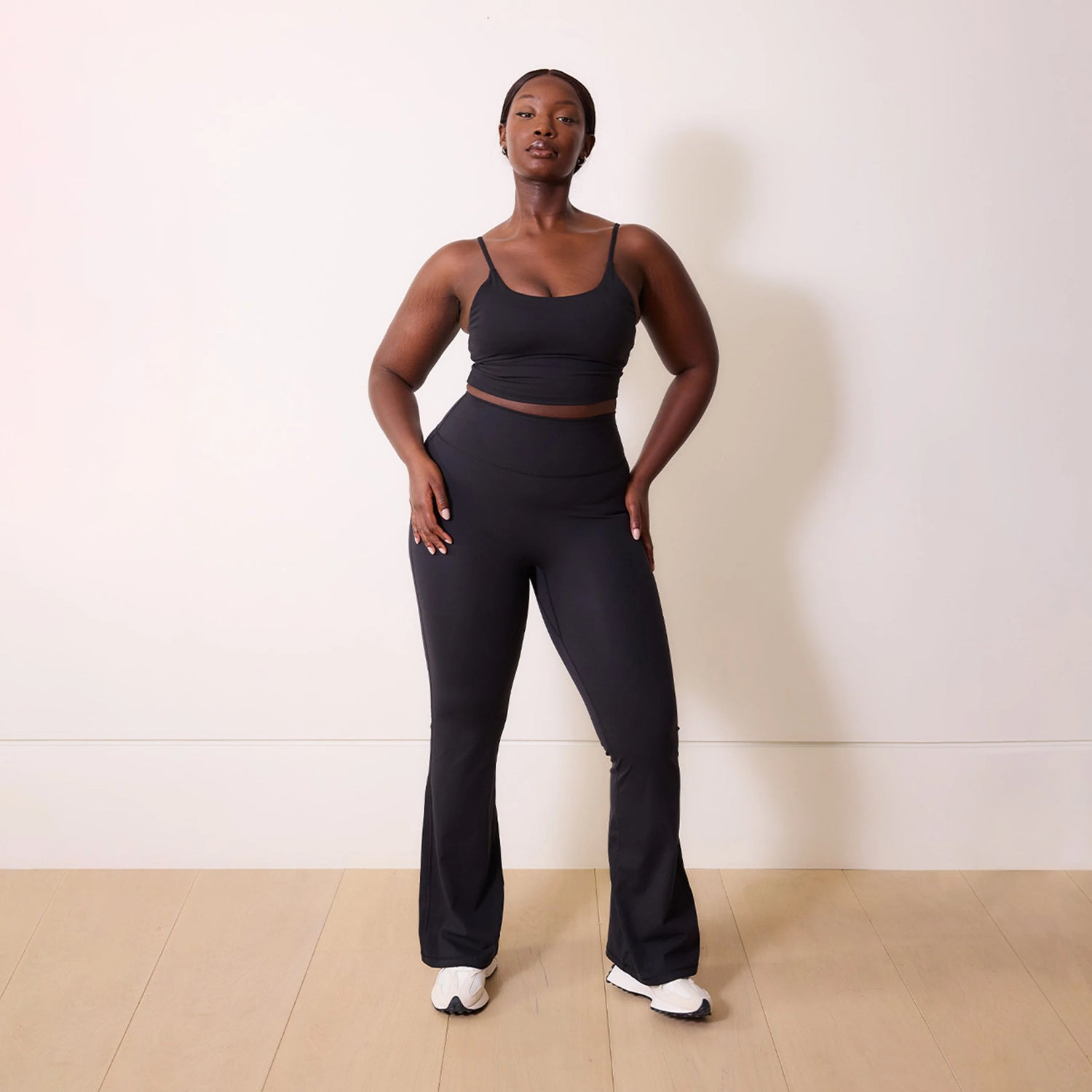 Ce legging évasé épouse vos courbes sans les comprimer. Votre ventre est maintenu, vos hanches dessinées, et vos jambes paraissent plus longues. Vous gagnez instantanément en confiance devant le miroir.